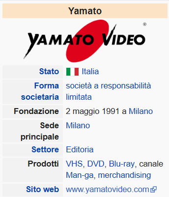 Yamato S.r.l. ha saputo per prima intuire l’importanza culturale dell’animazione giapponese, diventando leader del settore con attività che spaziano dalla distribuzione, edizione, licensing, publishing, e differenziandosi dai concorrenti sia per l’elevata qualità delle scelte editoriali, sia per il suo ampio catalogo che comprende opere di autori importanti, riconosciuti a livello internazionale.